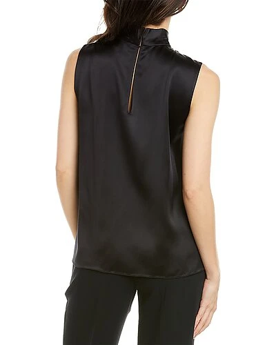 - Bow Silk Blouse in black with satin design and mock neck