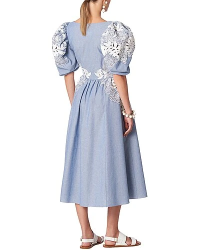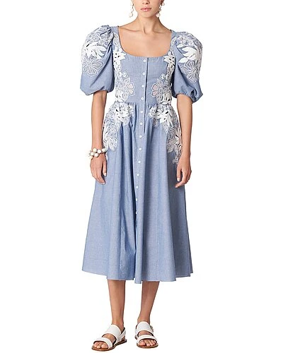 - Embroidered Puff Sleeve Shirt in ivory and blue