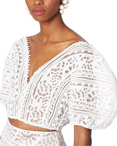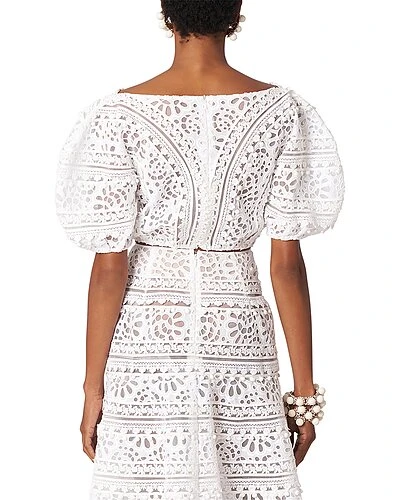 - Embroidered V-Neck Shirred Puff Sleeve Top in white