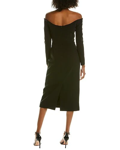 - Off-the-Shoulder Dress in black with off-the-shoulder style and vented back hem