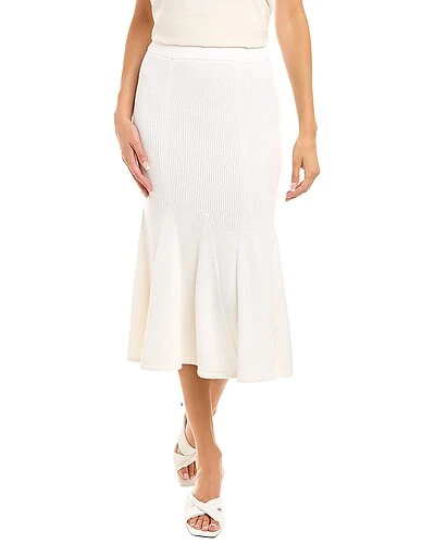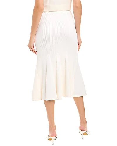 - Plaited Rib Knit Wool-Blend Godet Skirt in blackwhite