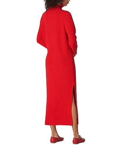 - Rib Knit Turtleneck Cashmere Dress in lacquer red