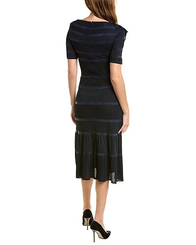 - Ruffled Scoop Neck Striped Motif in midnight