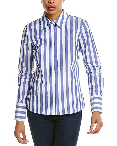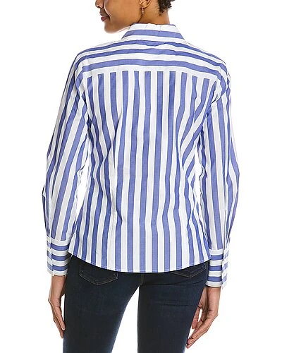 - Striped Button Down in white and blue combo with Full length sleeves and button cuffs